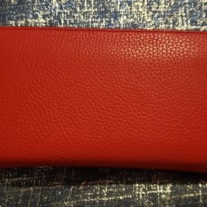 🔥🔥🔥🔥Authentic....New...Rosey Red...Standard Continental Wallet...Card Slots on BOTH sides...Coin Zipper Pocket...Outside Button Close Pocket...Beautiful RED Leather...🔥🔥🔥
