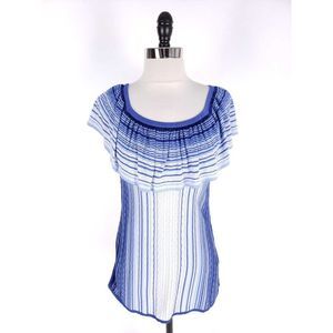 WHBM Knit Off The Shoulder Flounce Stripe Sweater