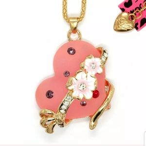 BJ, Red, Crystal Flower 3D Heart Sweater Necklace