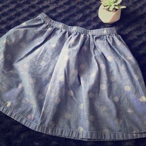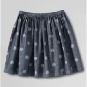 Lands End kids skirt. Denim with faded white polka dots.