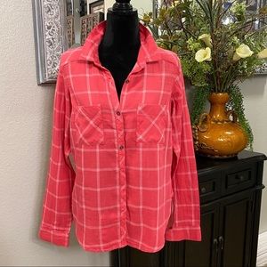 Plaid Coral and White Buttoned Down Shirt