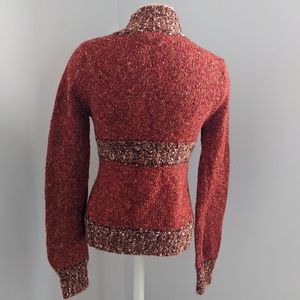 Bke orange/rust v-neck sweater with buttons. Very soft and figure flattering.