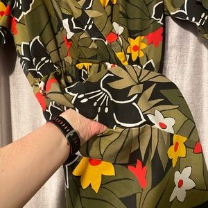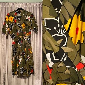 Classic floral circle dress with elastic waist and forgiving bust. Pre-owned but in excellent condition. Size on dress is 14 but the dimensions tell a different story. 19.5” pit to pit (taken from back), 43” long from top of shoulder. Non smoking and no pets.