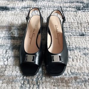 Gorgeous pair of Vara Buckle slingback heel sandals by Salvatore Ferragamo.
