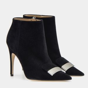 *SOLD* Sergio Rossi SR1 Black Suede Ankle Boots 110mm