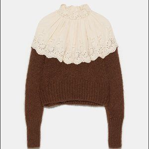 NWT Zara Contrasting Embroidered Sweater Brown S M