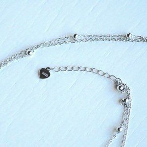 The first layer is a beaded chain and the second layer has crescent moons and stars. The two layers are connected in the back with an extender to adjust the desired length.
