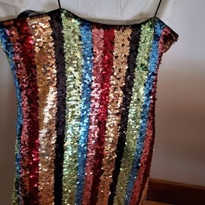 She & Sky pastel rainbow sequin party dress, lined with spaghetti straps and hidden side zipper. Never worn.