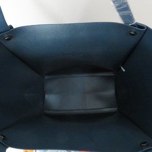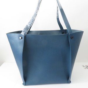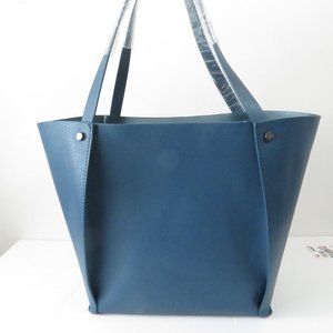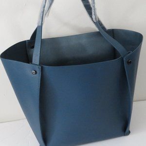New without tags Neiman Marcus large blue leather shoulder bucket purse, no inside pockets or storage. In excellent condition.