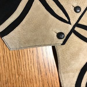 This vest is new; it has been in storage. There are some creases and minor discoloration on the lower edges of the tan accents. Overall this unique item is in very nice condition. Please see the photos for details about the condition. I would rate it a 9 out of 10. Perfect with denim or boho looks.