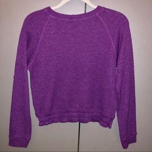 Monrow Thermal Raglan Tee in Orchid, Size Small. TTS. Super soft, thick, and warm long sleeved waffle tee. Slightly cropped but not too much. Elasticized hem is a unique detail. Worn once.