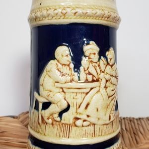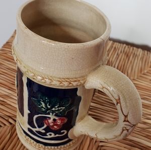 Japanese drinkware collectible, un-lidded ceramic beer stein, made in Japan. Stein is 7" tall, has depiction of grapes and a family at dinner in the old country and is hand painted. Condition is good, no defects, see photos for more details.