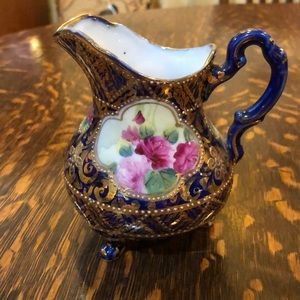 5” tall. 4.4” wide including handle. No marks on bottom. No chips. Very nice condition.