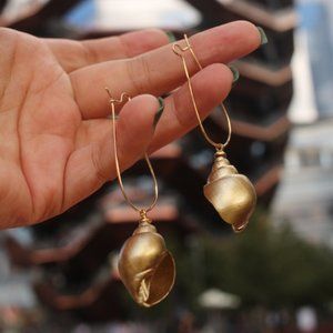 NEW Shell gold drop hook dangle spiral earrings gold plated metal shell conch drop earrings