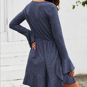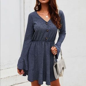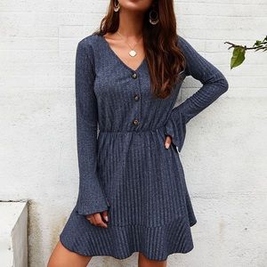 🦋V Neck Long Sleeve Mini Dress Navy