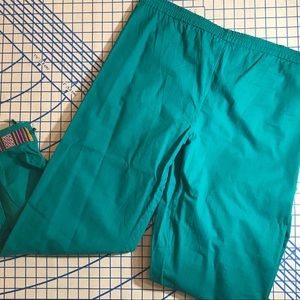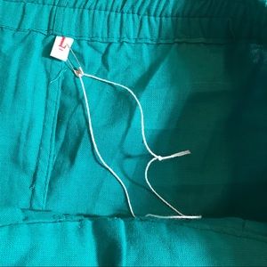 Teal blue with embroidered multicolored detail and ties at ankle side pockets , hidden zip panel in front and small pockets on front. Sized large new without tags size large festival style hippie bohemian fun comfy pants