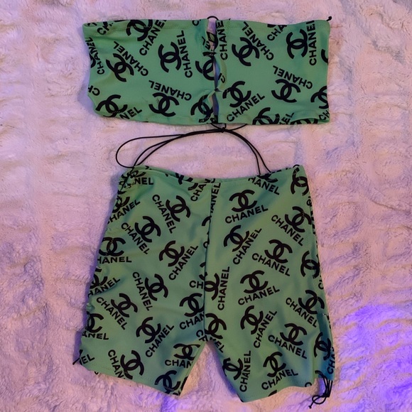Hand made custom exotic dancer - stripper - rave - festival outfit. Top can be worn with closure in the front of the back. Color looks amazing under black light. Brand new without tags. Fits US size S/M. Stretchy fabric.