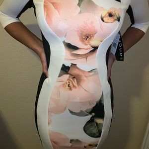 Dress that shows off your curves- Both dresses Outlined in Black with coral flowers or blue and coral