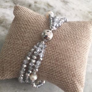 Silver Pearl Beaded Magnetic Multi Strand Bracelet