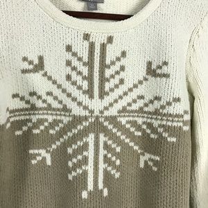 J Jill Snowflake Long Sleeve Sweater. Very warm and soft. Two tone cream and tan. In great condition with no signs of wear.