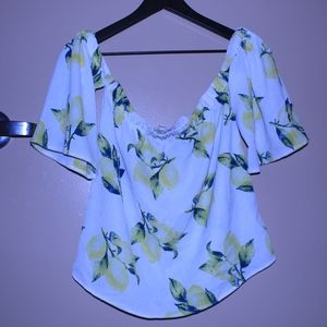 Sweet Wanderer Lemon Print Off-the-Shoulder Top