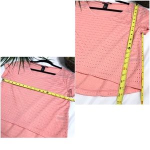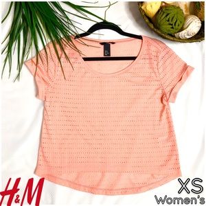 H&M short sleeve pink coral crop top with spotted holes. See through. Looks cute with a bralettes and high waisted shorts/jeans.