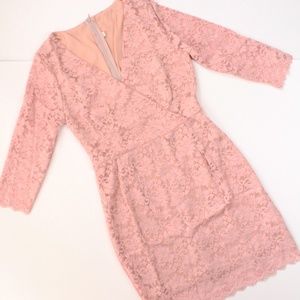 V-Neck Pastel Pink Lace Formal Mini Dress