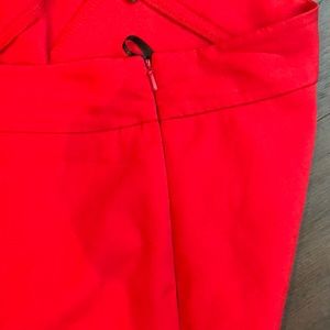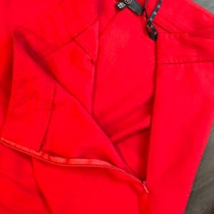Make a statement. Missguided brand (Asos). Bright, eye-catching red. Chic cut. Super light and breezy. Unlined. Side hidden zipper. Subtle pleats around waist. Worn once. Great used condition. Fits true to size in my opinion. Signs of wear at seam and hem shown in photos 13 & 14.