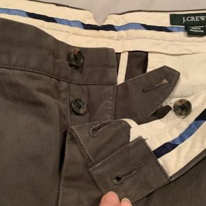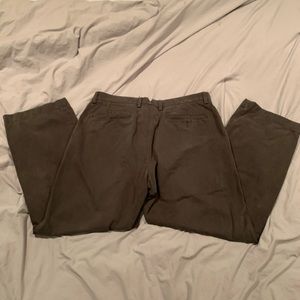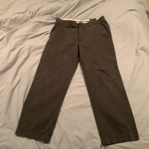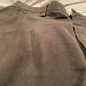 These are barely worn dark gray chinos. They are perfect pants for casual and dressy events, and perfect to wear to work. The have a double button at the top and they are a straight cut pant leg!