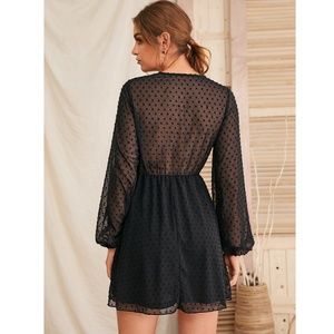 Tassel Ties Black Swiss Dot Sheer Mini Dress