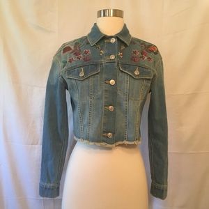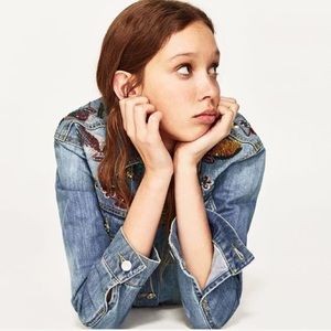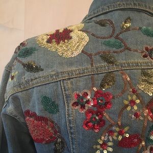 Zara Floral Sequin Cropped Denim Jean Jacket XS