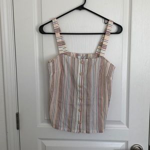 Brand new with tags. Easy button-down tank in textural rainbow stripes. Cotton. Length is 23”. Armpit to armpit measures 16” across.