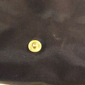 Small purse sized Le Pliage bag by Longchamp. Dark purple color. Base is about 7 1/2” long and zipper to bottom of bag is about 8”. I did the best I could on the measurements. :) slight scuff on the back by the snap in and small imperfections on the bottom also pictured. Smoke free but small dog friendly home.