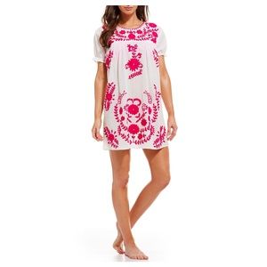 NWT. Floral embroidered tunic dress or swimsuit cover up. Round neckline and short sleeves with elastic hem. 100% cotton.