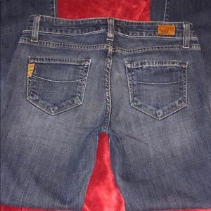 One of my favorite brands of jeans. These are just a little too big on me now so they need a new home. 5 pocket jeans with a hidden inside back pocket as seen in pic. Only noticeable wear is on inside lining where there’s some slight discoloration, but not noticeable when worn obviously. Otherwise great overall condition. Fabric is on the softer side and has a fair stretch to it. Length is 34’, see pics for other measurements.