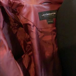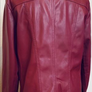 Liz Claiborne Winged-Collar Faux Leather Jacket Windsor Red . It is lightweight and fully lined . Perfect for spring !