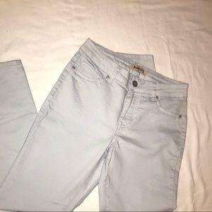 Super fun jeans baby blue color five pocket skinny jeans. Just up with pumps, boots or sandals. Inseam 26 1/2 inches.
