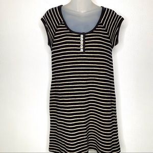 Free People black cream striped dress, front buttons, cap sleeves, scoop neck, 55% Wool, Bust 32.5”, Length 32.5”. Excellent Condition! (N8)