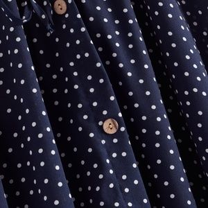 A-Line Navy Polka Dot Drawstring Midi Skirt