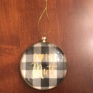 NWT....Holiday ornament that reads “I 💛 MY MUTT.” Plaid plaid black/white. Gold writing glass ornament w/solid gold back. Perfect for your 🐾 baby!