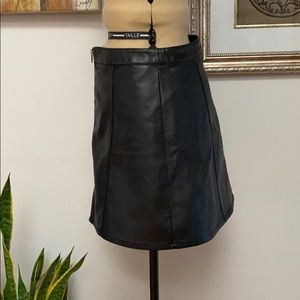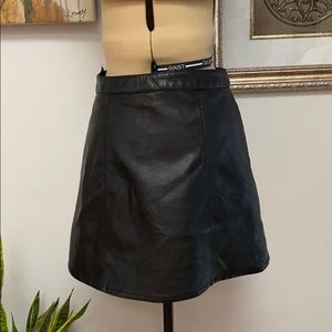Full zipper skater skirt in a faux black leather, this is calling all the spunky ladies who appreciate a touch of bad vibe in their daily look. Button at top of zipper to secure this gem in place. Not convinced you’re a full bad ass? No worries, you can pair with your usual sweet top, shoes, and nylons and she’ll give you the edge you’re craving. Questions, we likey. Ask away.