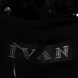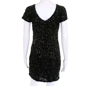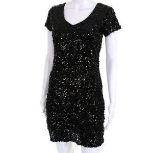 IVANA BLACK SEQUIN DOUBLE V NECK COCKTAIL DRESS SIZE 4