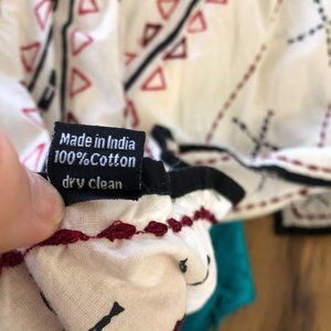 Printed with accents of red embroidery