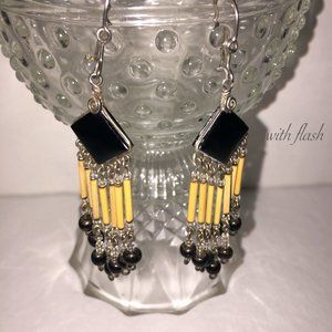 Pretty VTG BLACK ONYX & JASPER dangling earrings