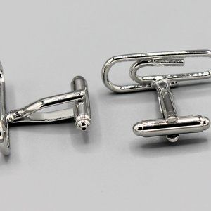 Paper clip clips office silver tone cufflinks