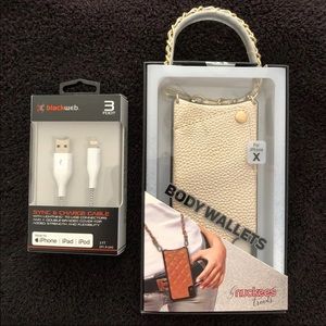 Nuckees Gold Vegan Leather Crossbody Wallet with a Free ($10 value) Blackweb 3ft iPhone Sync & Charge Cable