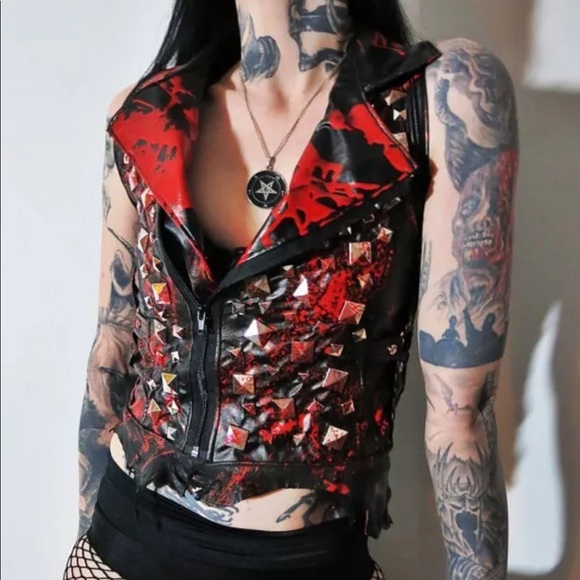 Mayhem Bloody Studded Genuine + Faux Leather Vest