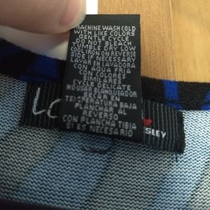 It features a black zebra stripe print on a bright blue. Fun 80s vibes!