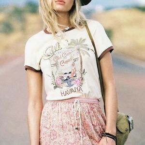 Skirt available in other CF listings! A short sleeve cotton tee shirt with block dark print letters and loose and relaxed fitting hem. Runs large. Brand new. Boutique.