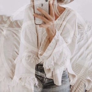 BECCA Knit Fringe Sleeve Sweater - CREAM